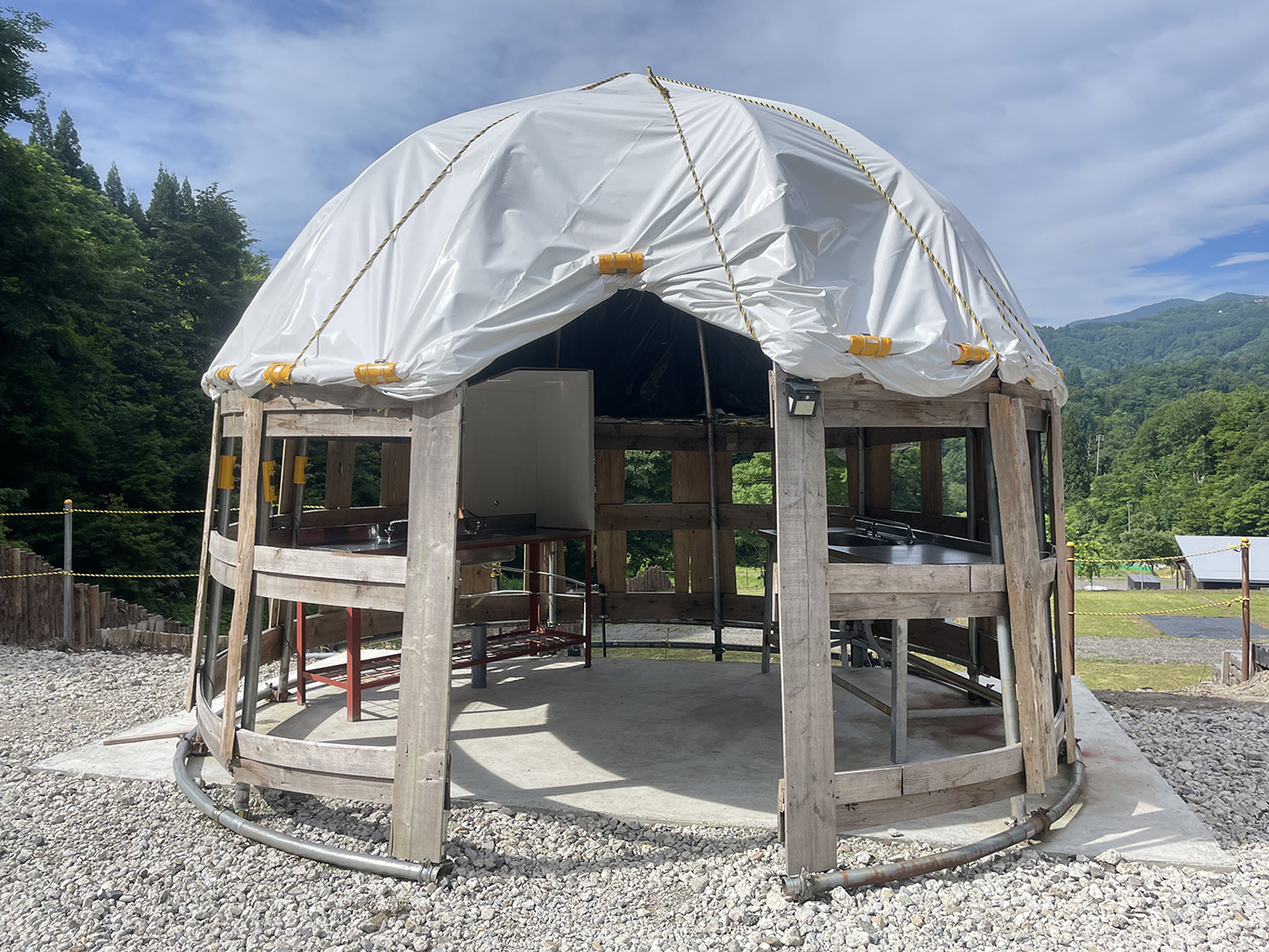雨が降っても安心のドーム型の炊事場となります。 サイト全体で1ヶ所となります。